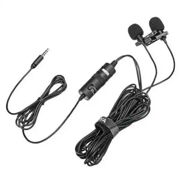 Micrófono Boya Omnidireccional Dual Condensador Cardioide By-M1Dm Características el Boya By-M1Dm Es un Micrófono Universal de Doble Solapa, Con un Solo Conector Estéreo de 1/8 , se Puede Usar Con Teléfonos Inteligentes, Cámaras Dslr, Videocámaras, Grabadoras de Audio, Pc y Otros Dispositivos de Grabación. Consiste en Dos de Los Micrófonos de Solapa Omnidireccionales Bien Recibidos y un Cable de 4 M (13 ') de Longitud, Es Perfecto Para Entrevistas, Presentaciones, Podcasts, Transmisiones Web o Cualquier Situación en la Que Sea Necesario Grabar Más de un Sujeto. su Cable de 4 M (13 ') Proporciona 2.8 M (9.2') de Distancia Entre Cada Micrófono Para Una Ubicación Cómoda, Mientras Que Los Clips de Sujeción Incluidos Permiten el Uso de Manos Libres. - Amplia Gama de Compatibilidad Compatible Con Teléfonos Inteligentes, Cámaras, Videocámaras, Grabadoras de Audio, Tabletas y Otros Dispositivos de Grabación de Audio / Video