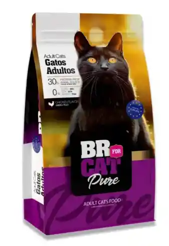El alimento BR For Cat Pure Adulto Pollo de 3 kg es un concentrado diseñado para gatos adultos con actividad moderada, destacándose por usar pollo deshidratado como su principal fuente de proteína.
