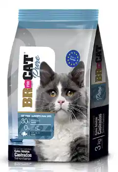 El alimento BR For Cat Pure Adulto Castrado Salmón en su presentación de 3 kg es un concentrado de categoría Premium Plus diseñado específicamente para gatos que, tras ser esterilizados, tienen una actividad física moderada o tendencia al sobrepeso
