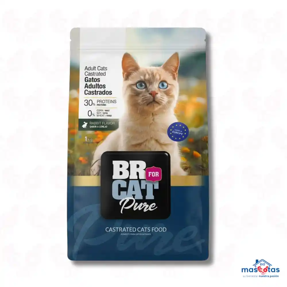 BR For Cat Castrados es un alimento seco premium para gatos esterilizados, diseñado para controlar el peso en felinos menos activos con un 30% de proteína y menor contenido calórico. Su fórmula basada en pollo y pescado (alto en DHA) incluye fibra y nutrientes para la salud urinaria y el control de bolas de pelo. Características Principales: Control de Peso: Fórmula reducida en grasa y calórica para prevenir el sobrepeso tras la castración. Salud Urinaria: Ayuda a mantener un pH adecuado en la orina. Ingredientes de Calidad: Pollo deshidratado, arroz y pulpa de remolacha para una digestión eficiente. Alta Palatabilidad: Diseñado para ser irresistible a pesar de ser una dieta de cuidado especial. Componentes Nutricionales (Aproximados): Proteína Cruda: 30% (mínimo). Grasa Cruda: 8% (mínimo). Fibra Cruda: 5% (máximo). Humedad: 10% (máximo). Beneficios: Ayuda a mantener la masa muscular. Incluye Yucca Schidigera para mejorar la calidad de las heces.