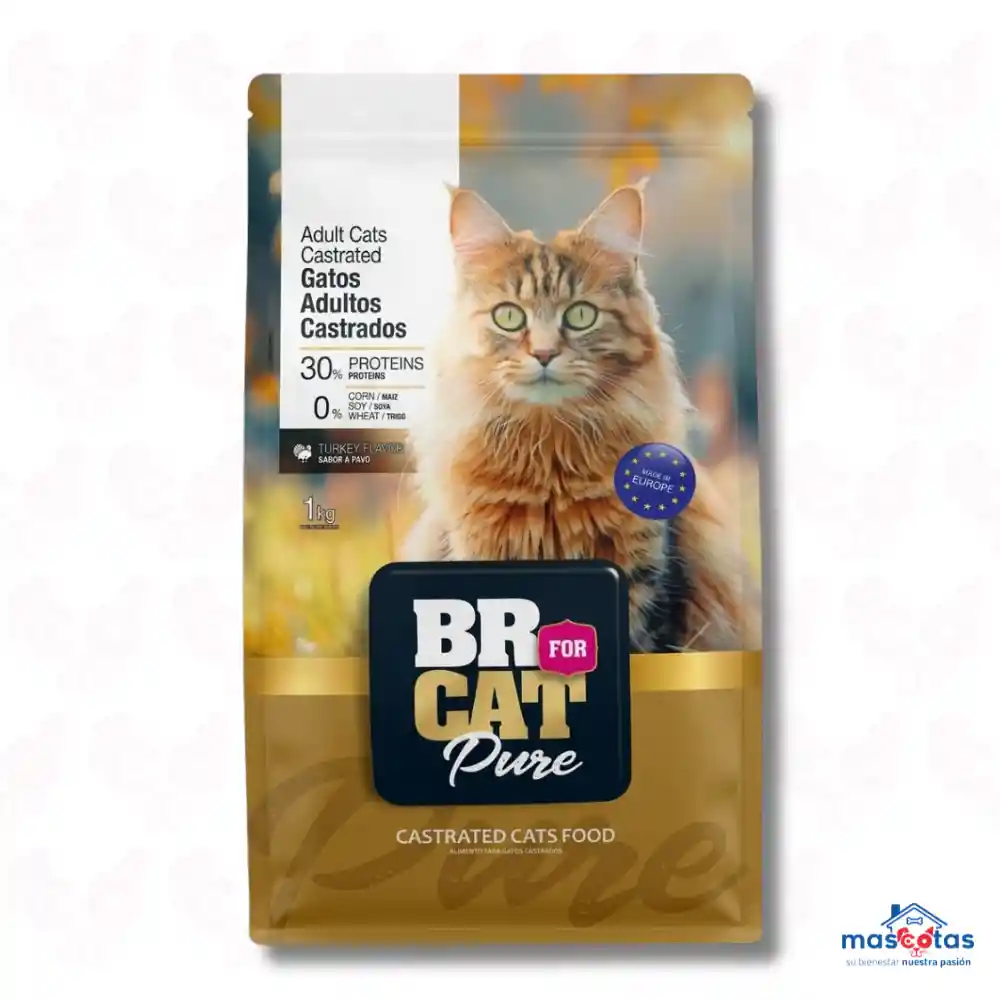 BR For Cat Castrados es un alimento seco premium para gatos esterilizados, diseñado para controlar el peso en felinos menos activos con un 30% de proteína y menor contenido calórico. Su fórmula basada en pollo y pescado (alto en DHA) incluye fibra y nutrientes para la salud urinaria y el control de bolas de pelo. Características Principales: Control de Peso: Fórmula reducida en grasa y calórica para prevenir el sobrepeso tras la castración. Salud Urinaria: Ayuda a mantener un pH adecuado en la orina. Ingredientes de Calidad: Pollo deshidratado, arroz y pulpa de remolacha para una digestión eficiente. Alta Palatabilidad: Diseñado para ser irresistible a pesar de ser una dieta de cuidado especial. Componentes Nutricionales (Aproximados): Proteína Cruda: 30% (mínimo). Grasa Cruda: 8% (mínimo). Fibra Cruda: 5% (máximo). Humedad: 10% (máximo). Beneficios: Ayuda a mantener la masa muscular. Incluye Yucca Schidigera para mejorar la calidad de las heces.