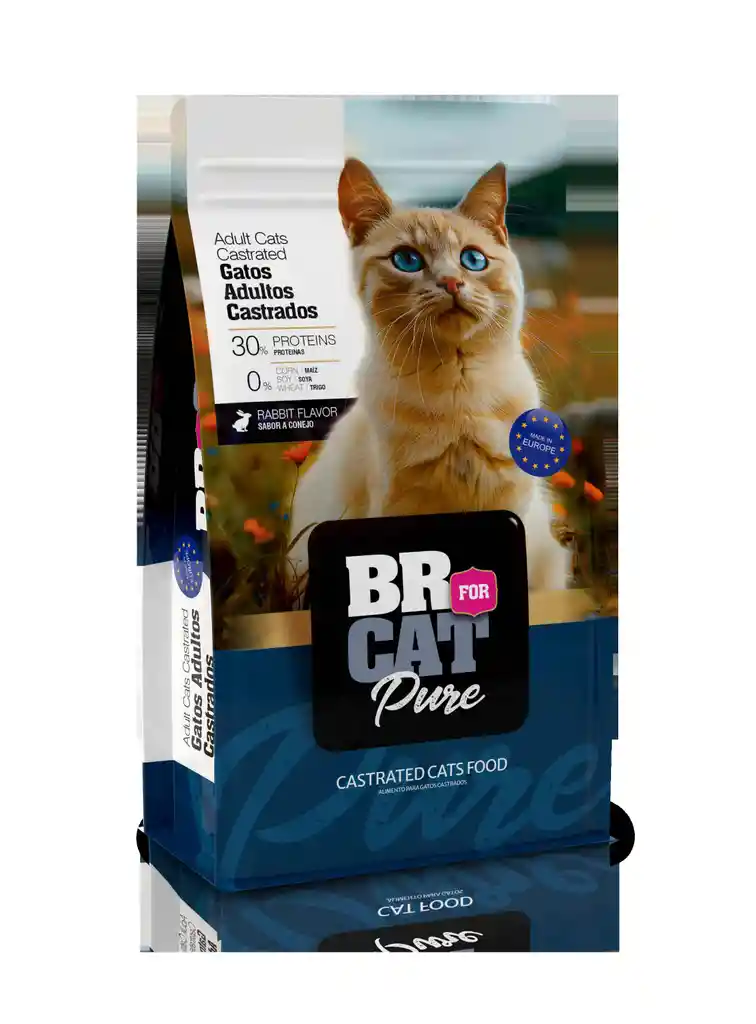 BR FOR CAT PURE CASTRADO DE CONEJO ES UN ALIMENTO COMPLETOPARA GATOS ADULTOS DE TODAS LAS RAZAS. ALTA DIGESTIBILIDADSUPERIOR AL 87%,SILIMARINA COMO MPROTECTOR HEPATICO,VITAMINA E,SELENIO Y ZINC,ANTIOXIDANTES NATURALES, ENRIQUEDO CON TAURINA,AYUDA AL CONTROL DE BOLA DE PELOS, SIN PRODUCTOS MODIFICADOSGENETICAMENTE, PIEL Y PELAJE SANO, NIVELES DE ACIDOS GRASOS OMEGA 3 Y 6.