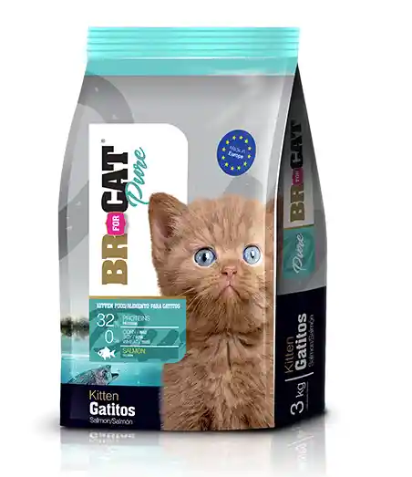Fórmula BR® For Cat Pure Gatito Salmón está especialmente diseñado para satisfacer las necesidades de un gatito durante los períodos críticos del crecimiento. Los gatitos necesitan mayores niveles de proteína y grasa para mantener los niveles de energía necesaria durante el crecimiento. Gatitos también necesitan aumento de los niveles de Calcio y fósforo para un mejor desarrollo óseo y muscular. También se recomienda la Fórmula BR® For Cat Pure Gatito Salmón para gatos durante el embarazo y la lactancia. es un alimento completo para suministrar gatitos de todas las razas a partir del destete y hasta los 12 meses de edad