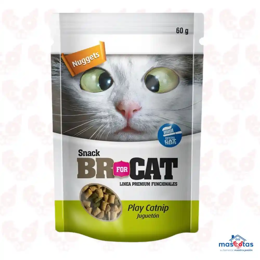 Br For Cat Nuggets Play Catnip es un suplemento alimenticio para gatos de todas las edades, razas y tamaños el cual puede ser suministrado como premio al buen comportamiento. Presentación 60g. Recomendación Debe conservarse en lugar seco, fresco y ventilado, lejos del alcance de rayos solares directos. Durante el uso mantener el envase cerrado. Consumir en el máximo 30 días después de abrir el empaque. Composición Harina de Maíz, Harina de Trigo, Glicerina, Lecitina, Grasa de pollo, Agua, Harina de pollo, Harina de salmón, Colorantes (óxido de hierro rojo), Butilhidroxitolueno (BHT), Sorbato de potasio, Saborizantes a carne, Saborizante a pescado, Ácido fosfórico, Premezcla vitamínica (vitamina E, vitamina C, L-camitina, Taurina), Harina de huevo e Hígado de pollo hidrolizado.