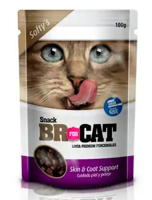 BR for CAT® Snacks para Gatos Cuidado Piel y Pelaje Skin & Coat de 100 gr ¿Qué son los snacks para gatos BR for CAT Cuidado de la Piel y Pelaje? Los snacks BR for CAT Cuidado Piel y Pelaje son un suplemento premium para gatos mayores de 6 meses. Elaborados con proteína de pollo, vitaminas E y C, L-carnitina y taurina, estos premios cuidan la salud de la piel, reducen la caída del pelo y el picor, mientras protegen órganos vitales como hígado y riñones. Su textura suave no solo es irresistible para tu gato, sino que también ayuda a prevenir la formación de placa y sarro dental.