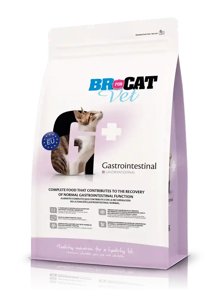 ¿Sabías que una alimentación adecuada puede marcar la diferencia en la recuperación gastrointestinal de tu gato? Conoce BR for Cat Vet Gastrointestinal, un alimento completo especialmente formulado para apoyar la salud digestiva, disponible en Animal's Veterinaria. BR for Cat Vet Gastrointestinal está diseñado para contribuir con la recuperación de la función digestiva normal en gatos con trastornos gastrointestinales. Elaborado en España, este alimento ofrece una nutrición precisa y equilibrada que ayuda a tu felino a sentirse mejor más rápido