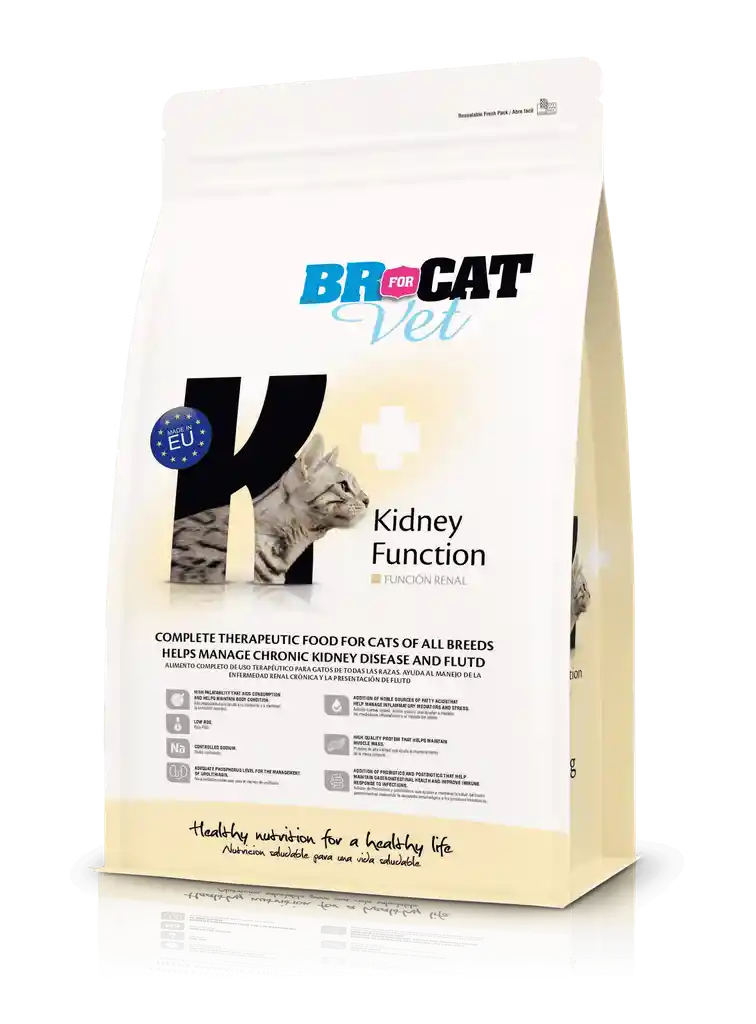 Alimento medicado que apoya la función renal, con nutrientes balanceados para el cuidado de los riñones y bienestar de tu gato. 💚
