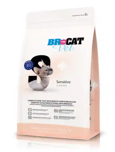 BR For Cat alimento para gato sensible es un alimento seco medicado formulado especialmente para gatos con sensibilidad digestiva. Está diseñado para ser altamente digestible, hipoalergénico y nutritivo, con una fórmula balanceada que ayuda a mejorar la función gastrointestinal, reduce las reacciones alérgicas y promueve una mejor absorción de los nutrientes.