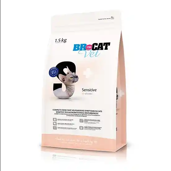 BR FOR CAT VET SENSIBLE es un alimento completo para suministrar a gatos adultos de todas las razas con sensibilidad alérgica. Recomendación Debe conservarse en lugar seco, fresco y ventilado, lejos del alcance de rayos solares directos. Durante el uso mantener el envase cerrado. Consumir en el máximo 30 días después de abrir el empaque. Proteína de Pavo Deshidratada, Proteína de Guisantes, Grasa de Pollo, Arroz, Almidón de Tapioca, Guisantes, Semilla de Lino, Pulpa de Achicoria, Celulosa en Polvo, Sacharomyces Cerevisiae, Selenito de Sodio, Sulfato de Cobre, Sulfato de Hierro, Sulfato de Manganeso, Sulfato de Zinc, Yodato de Calcio, Taurina, Vitamina A, Vitamina D3, Vitamina E, BHT Calorías 3.750 Kcal/Kg. Calorías 3.750 Kcal/Kg. Proteína (mínimo) 28.0% Grasa (mínimo) 11.0% Fibra (máximo) 4.2% Ceniza (máximo) 8.6% Humedad (máximo) 9.0%