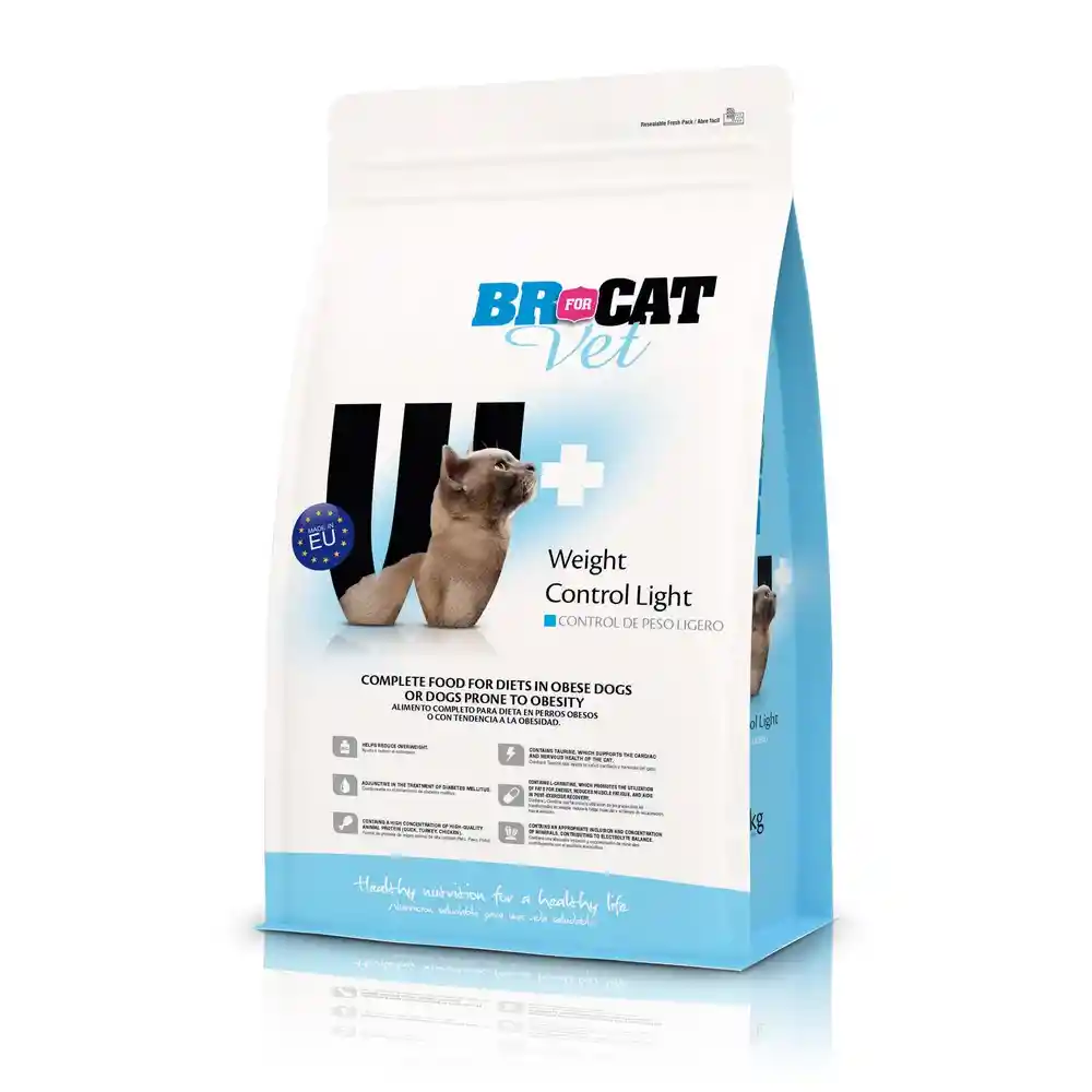 BR For Cat Veterinary Control de Peso es un alimento formulado para gatos con sobrepeso o tendencia a la obesidad, diseñado para apoyar el manejo nutricional del peso corporal sin comprometer el aporte de nutrientes esenciales. Su fórmula contiene niveles controlados de calorías y grasas, junto con proteínas de calidad que ayudan a mantener la masa muscular mientras el gato reduce o estabiliza su peso. Este alimento de la línea BR For Cat Veterinary incorpora fibras funcionales que contribuyen a generar mayor sensación de saciedad, ayudando a disminuir el consumo excesivo de alimento entre comidas. Además, su balance de vitaminas, minerales y antioxidantes apoya el metabolismo y el bienestar general del gato durante el proceso de control de peso. Está indicado como apoyo nutricional en programas de reducción o mantenimiento de peso, ayudando a mejorar la condición corporal del gato y a disminuir los riesgos asociados al sobrepeso, como problemas metabólicos o articulares. Se recomienda su uso bajo supervisión veterinaria para asegurar un manejo adecuado de la dieta.