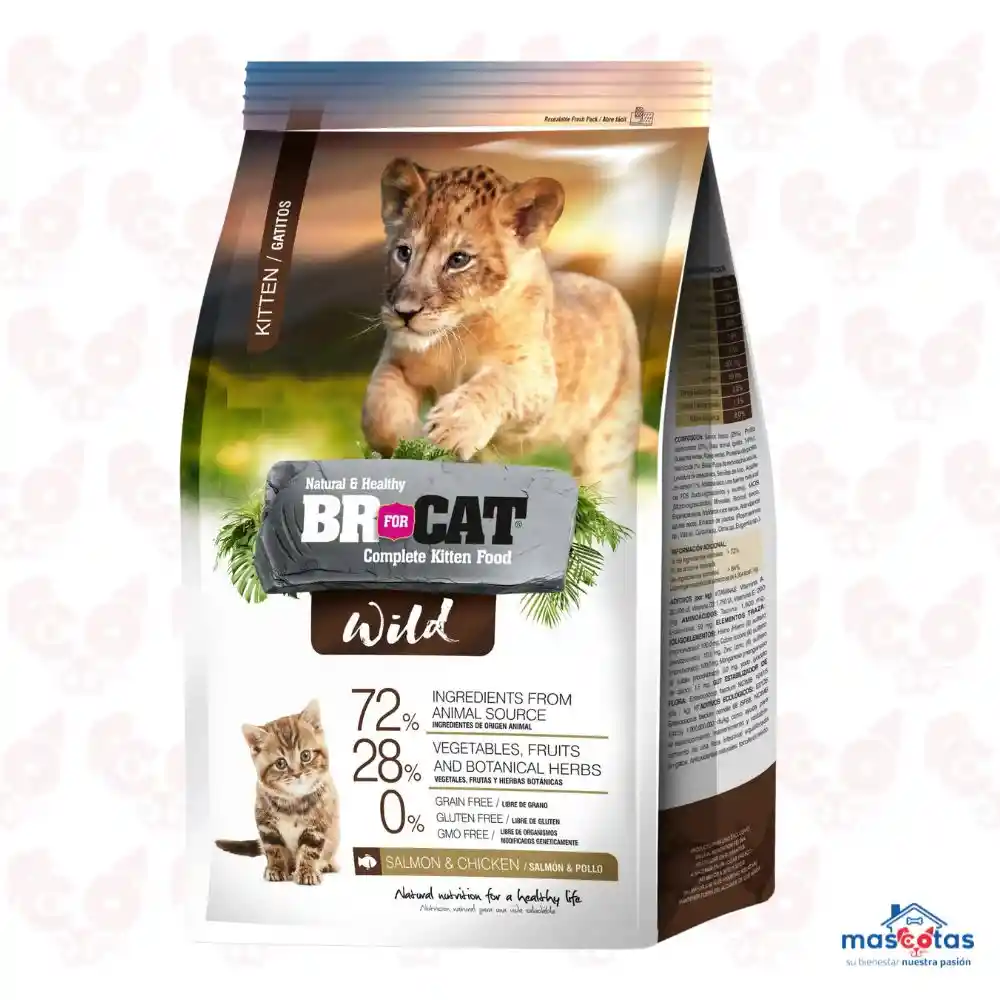 BR FOR CAT WILD KITTEN, es un alimento completo para gatos cachorros de todas las razas, mantiene el sistema inmunológico saludable, piel y pelaje sano. Información Adicional % de ingredientes animales: 72% % de proteína derivada de ingredientes animales: 84% La energía metabólica del alimento es de 4.304kcal/kg. Libre de granos y gluten Contiene 33% de Proteína. Salmón fresco (25%), Pollo deshidratado (25%), Grasa animal (pollo 14%), Guisantes verdes, Arvejas verdes, Proteína de pollo hidratado(7%), Batata, Pulpa de remolacha seca, Levadura de cerveza seca, Semillas de lino, Aceite de salmón (1%), Achicoria seca (Una fuente natural de FOS (fructo-oligosacáridos y Inulina), MOS (Mono-oligosacáridos), Minerales, Brócoli seco, Espinacas secas, Arándanos rojos secos, Arándanos azules secos, Extractos de plantas (Rosmarinus sp., Vitis sp., Cúrcuma sp., Citrus sp., Eugenia sp.). Proteína (mínimo) 33% Grasa (mínimo) 23% Fibra (máximo) 3,0% Humedad (máximo) 9,0% Cálcio (mínimo) 0,9% Fósforo (mínimo) 0,5% Taurina 1,800 mg L-carnitia 50 mg Omega 6 ácidos grasos 3,3% Omega 3 ácidos grasos 1,1% Materia Inorgánica 8,0%