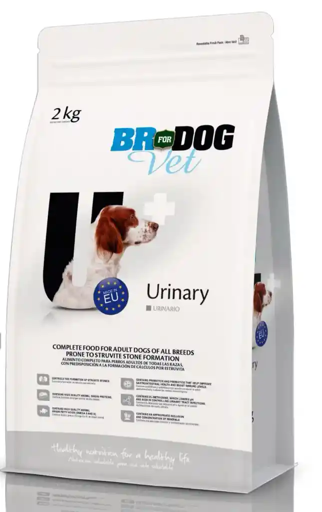 BR for Dog Vet Urinary es un alimento veterinario completo diseñado para perros adultos con problemas o predisposición a cálculos urinarios, especialmente los de estruvita. Su fórmula ayuda a mantener un pH urinario saludable, puede disolver cálculos existentes y prevenir la formación de nuevos, e incluye ingredientes como arándanos deshidratados para el soporte del sistema urinario. Es un alimento de alta calidad con proteína digestible para nutrición óptima, y debe ser recomendado y supervisado por un veterinario.