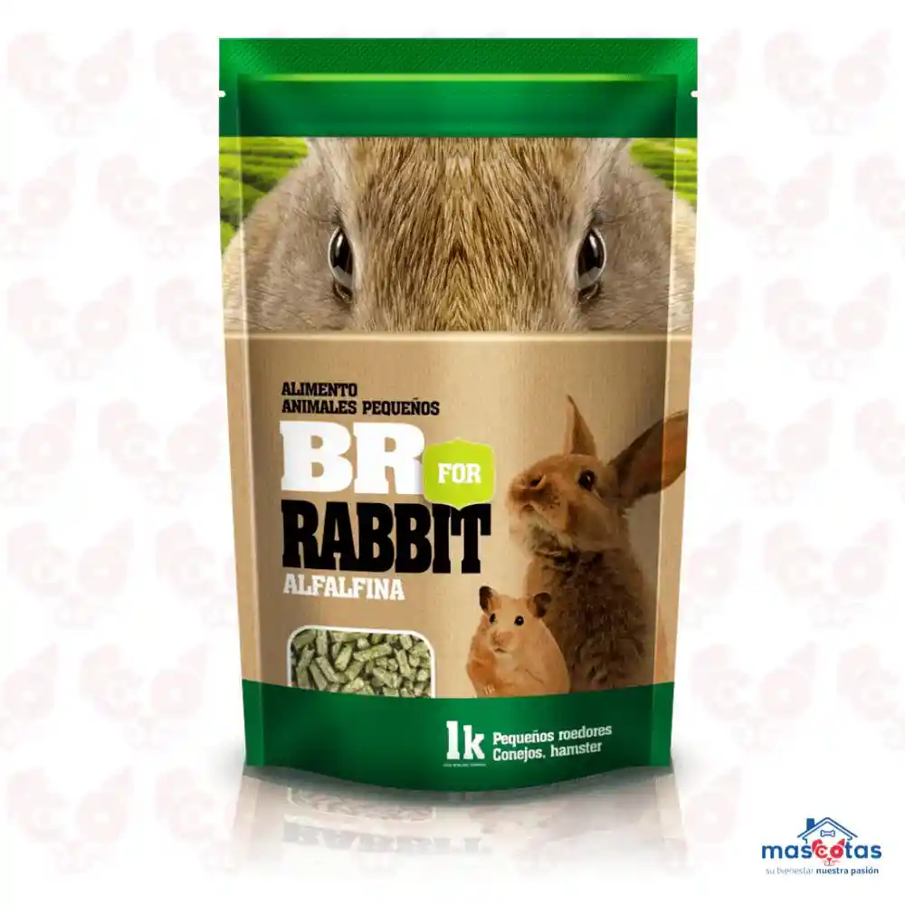 Fórmula BR® For Rabbit es un alimento completo para conejos y animales pequeños, desde el destete hasta adulo. Presentación 1 Kg Recomendación Debe conservarse en lugar seco, fresco y ventilado, lejos del alcance de rayos solares directos. Asegúrese de que la bolsa esté bien cerrada después de cada alimentación. El alimento tiene una vida útil de 18 meses. Composición Harina de alfalfa, harina de maíz, harina de cebada, torta de soya, aceite de palma, carbonato de Cálcio, cloruro de sodio, melaza, bacitracina de zinc, colina, manganeso, cobre, zinc, iodo, selenio, cobalto, metionina, vitamina (A, D3, E, K3, B1, B2, B6, B12), ácido pantoténico, biotina, ácido fólico, ácido ascórbico. Para conejas en lactancia con sus gazapos el consumo debe dejarse a voluntad. Para hembras gestantes, administrar a razón de 200 g/animal/día. Mantener suficiente agua fresca a su mascota.