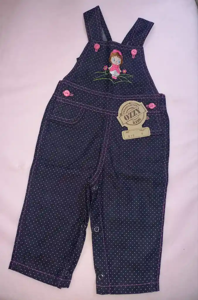 Braga en dril para niña, talla 2, color azul oscuro, estampada.
