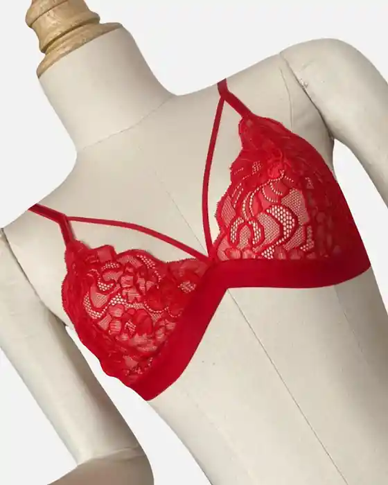 Talla: XS Fabricado en encaje, sin broche, con elástico alrededor del torso y una tira decorativa en el pecho.