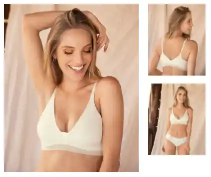 Talla L - Color Marfil / Bralette tipo top ultra cómodo y livianoSin arco. Tipo top. Malla en la base del contorno. Cargaderas dobles en el frente y graduables en el posterior. Tela cruzada en espalda.