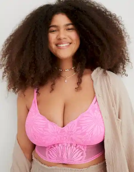 Encaje de Hibisco Real Good Longline Para Mayor Comodidad y Cobertura Detalles de Malla (¡Porque Todo Está en Las Cosas Pequeñas!) Plunge Front: Una Silueta Profunda Hecha Para Camisetas Con Cuello en v.