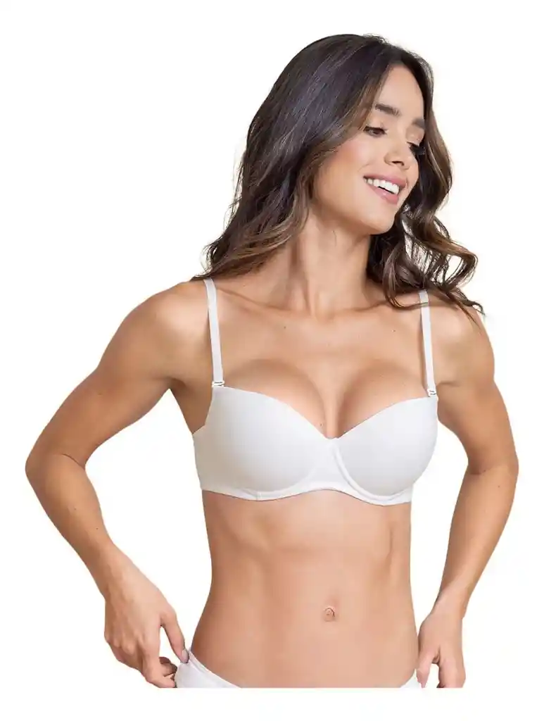 Brasier con cubrimiento medio del busto. Cuenta con arcos y con realce incorporado en la parte inferior de las copas para darle una forma más redondeada a tu escote y más volumen al busto. Copas suaves al tacto y lisas, para que no se marquen través de tu ropa. Su espalda en tela elástica es perfecta si buscas un cubrimiento medio. Abrochadura de 3 ganchos y 4 posiciones y cargaderas graduables y removibles para que lo uses de forma convencional, cruzada o halter. COLOR: Blanco. Talla: 34 B.