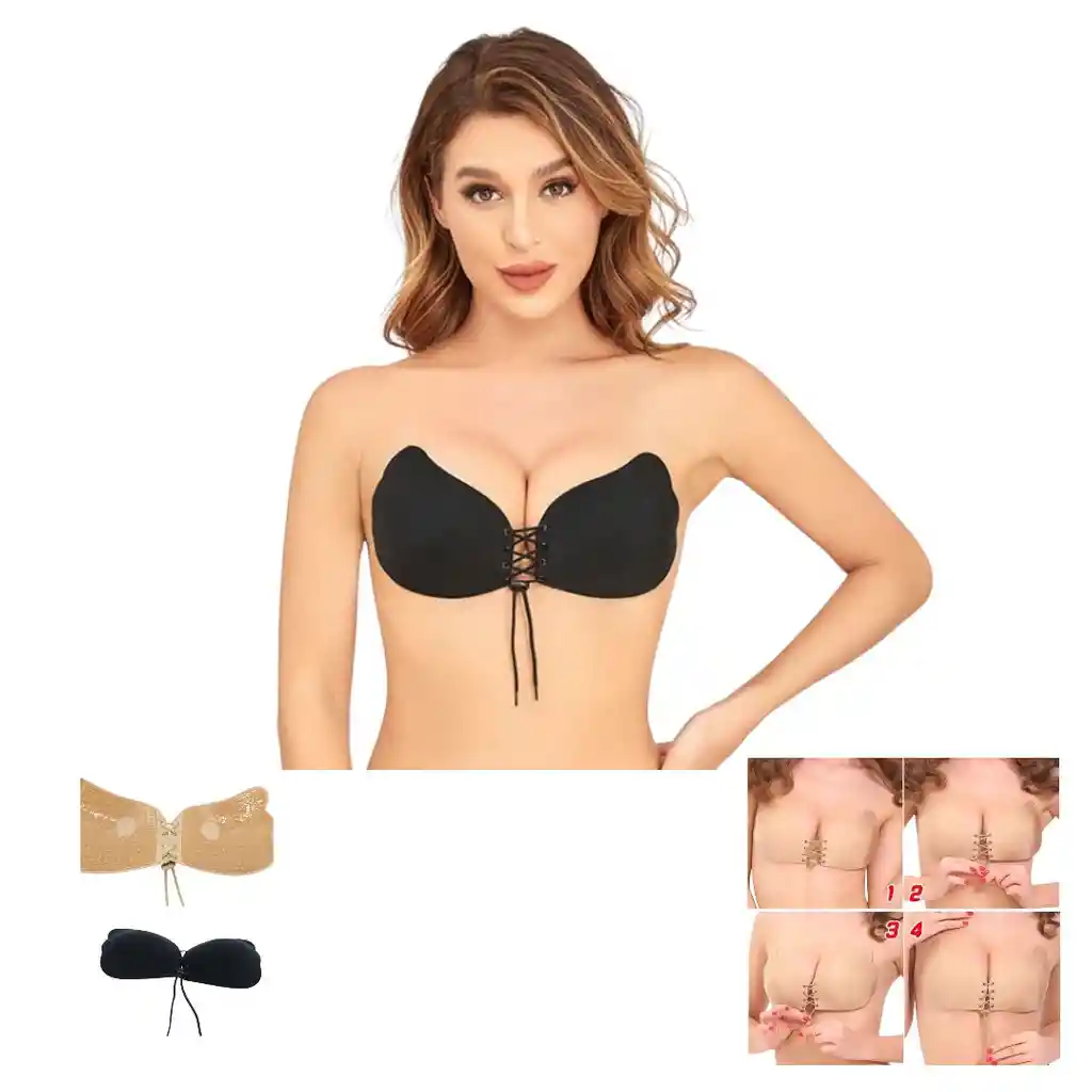 brasier adhesivo invisible (también conocido como "magic bra" o brasier tipo mariposa), diseñado específicamente para usarse con prendas sin espalda o sin tirantes. Talla unica se enviara color a disponibilidad de inventario negro o beis.