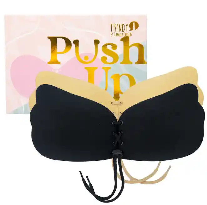 El realce y la comodidad que estabas buscando en tu busto con nuestro Brasier invisible Push Up. Tenemos dos colores: Negro y beige. Puedes elegir el color que prefieras. – Viene una sola unidad en la caja. Es reutilizable hasta 60 veces según el uso y cuidados. Está diseñado anatómicamente para adaptarse a la figura del pecho perfectamente. Realza tu busto sin necesidad de tirantes. Es ideal para escotes strapless, vestidos strapless, escotes en espalda y vestidos de fiesta. Es un sujetador que tiene adhesivo en su interior y en la parte exterior es de tela. Sus materiales son hipoalergénicos La cuerda que sujeta las dos copas realza y trae el pecho hacia al frente, logrando una apariencia natural pero linda en el busto. Guarda el protector del pegante para ponerlo nuevamente en la parte adhesiva del brasier. Modo de uso: Antes de retirar los papeles protectores del adhesivo, mide tu brasier en diferentes posiciones hasta lograr el mejor ajuste. 1. Separa las copas es decir suelta el cordón sutilmente. 2. Frente al espejo, coloca la copa en el seno para obtener el ángulo deseado y presiona los bordes de toda la copa suavemente para dar firmeza. 3. Repite el mismo paso para la otra copa. 4. Asegúrate de que ambos lados estén a la misma altura y en el mismo ángulo. 5. Tira del cordón hasta lograr el realce deseado.