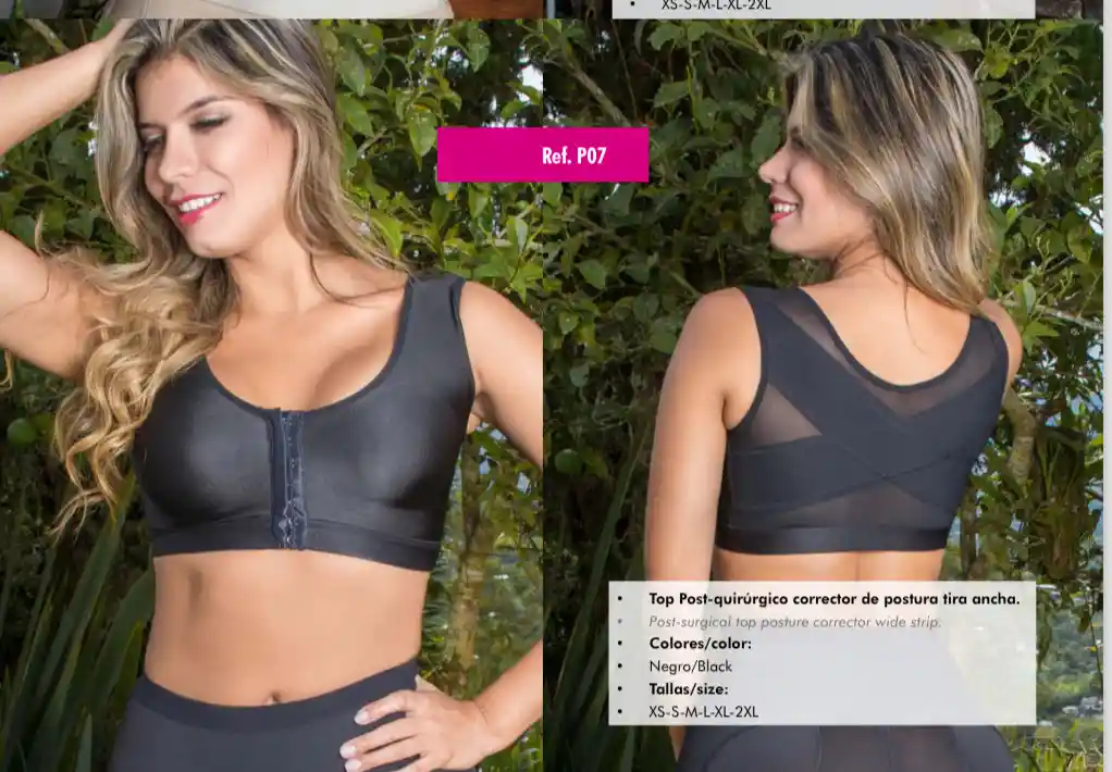 Top Post quirúrgico corrector de postura tira ancha. color disponible: negro tallas: xs:30 s: 32 m:34 l:36 xl:38 2xl=40 3xl=42
