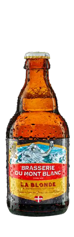 Brasserie Du Mont Blanc con 5,8 Una cerveza rubia, fina, con cuerpo, un amargor equilibrado, que ofrece un espíritu floral, afrutado y especiado. Un sabor malteado inicial, con cuerpo y con un final especiado a regaliz. Con mezcla de 3 cereales (malta de trigo belga, malta de cebada y maíz), y combinación de varios lúpulos incluyendo el lúpulo Strisselspalt (Francés) con sabores suaves y muy equilibrados. Elaborada con agua de los glaciares del Mont Blanc (SIN GLUTEN)