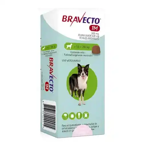 Tabletas masticables a base de fluralaner para el tratamiento de infestaciones por garrapatas, pulgas y ácaros de la sarna demodécica e infestaciones por ácaros Otodectes cynotis en perros adultos entre 10kg a 20kg de peso total. También evita la transmisión de Dipylidium caninum en perros durante 37 días.