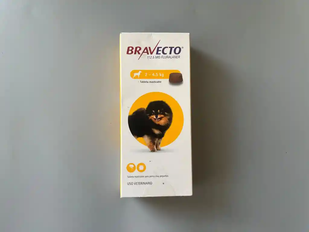 Bravecto Antipulgas y Garrapatas de suministro oral y masticable para perros. Está formulado para tratar y prevenir las infestaciones de pulgas y garrapatas y su efecto empezará a actuar después de 2 horas de haber suministrado la tableta. Bravecto contiene Fluralaner un fuerte compuesto que actúa sobre el sistema nervioso de los artrópodos como las pulgas y las garrapatas eliminándolas eficientemente. Su efecto durará hasta 12 semanas, así que su perro tendrá máxima protección por mucho más tiempo.