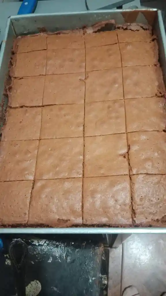 Delicioso brownie suave, balanceado y relleno de arequipe