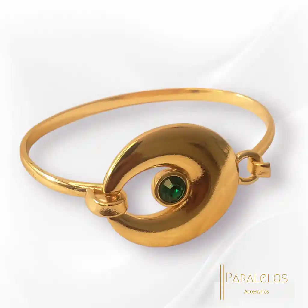 Así como únicos, cada brazalete cuenta una historia llena de momentos con buenos recuerdos. Dale un toque diferente a tu outfit con la magia de nuestros brazaletes. Tipo de Brazalete: De Broche Materiales -Gemas: Sintéticas -Elementos metálicos: bronce con baño dorado brillante Tamaño aproximado: 6.5 cm de diámetro