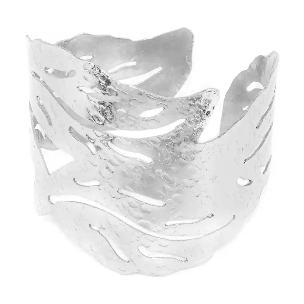 MARIA RESTREPO ENIGMA JOYERÍA Un brazalete para no pasar inadvertido y darles protagonismo a tus brazos. Combínalo fácil con tus prendas por su color y textura. Anímate a darle un toque muy elegante a tu vida. • Brazalete en bronce con baño de plata ley 925 • Medidas: Largo 2,9 cm, Ancho 4,2 cm, Alto 3,7 cm • Peso en gramos: 28,7g CUIDADOS • Evita el contacto directo con cremas, perfumes, splash, lacas, tinturas, bronceadores, cloro y alcohol. • Guarde cada producto en su empaque individual para evitar rayones, enredos, cambio de forma o desgaste en acabados. • Evite el contacto con agua de mar y agua de piscina. • Evite caídas, golpes o manipulación fuerte del producto. GARANTÍA • Garantía en tiendas físicas y plataformas Online.