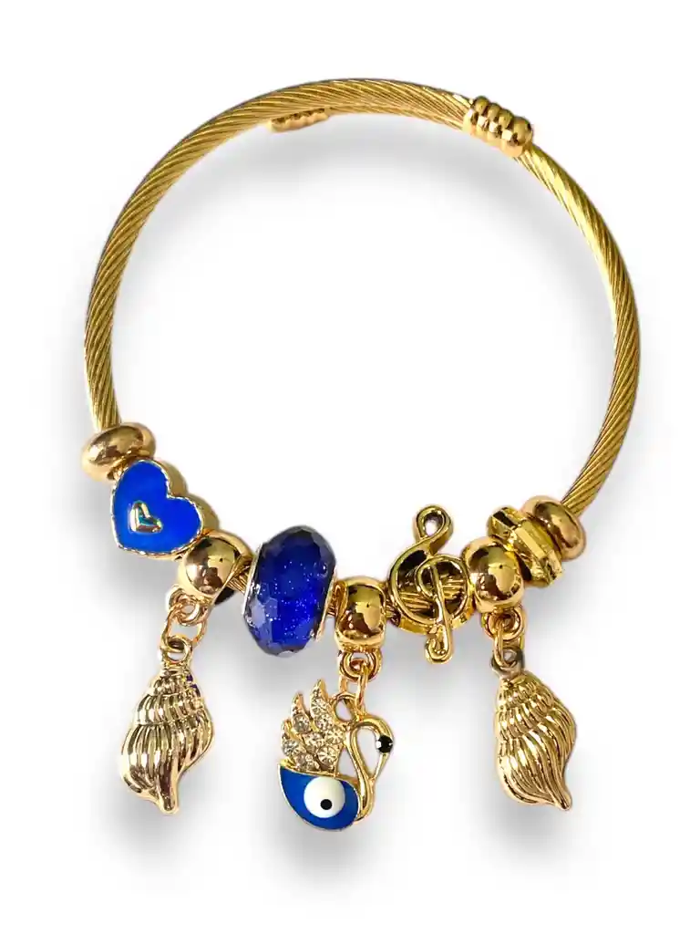 Luce el brillo inigualable del oro con nuestros brazaletes Pandora en Cover Gold. Cada pieza es una obra maestra de diseño, fusionando la sofisticación clásica con un toque contemporáneo. Perfectamente elaborados para realzar tu estilo, estos brazaletes son el complemento ideal para cualquier ocasión, desde eventos elegantes hasta tus looks diarios. Limpieza: Usa un paño suave y seco regularmente. Evita productos químicos agresivos. Protección: Mantén las joyas alejadas de perfumes, cremas y productos de limpieza. Almacenamiento: Guarda en un lugar seco, en su caja o en una bolsa de tela suave. Uso Cauteloso: Evita usarlos durante actividades físicas o en contacto con agua. Rotación: Alterna el uso de tus brazaletes para evitar desgaste excesivo. Estos cuidados mantendrán tus brazaletes brillantes y como nuevos por más tiempo.