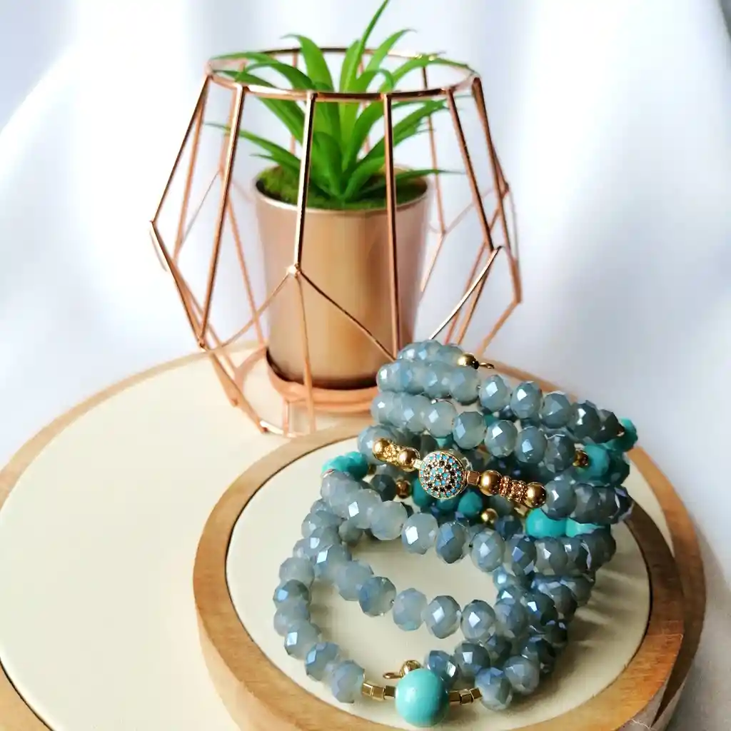 Brazalete con muranos, turquesas y dije central en rodio con microcircones