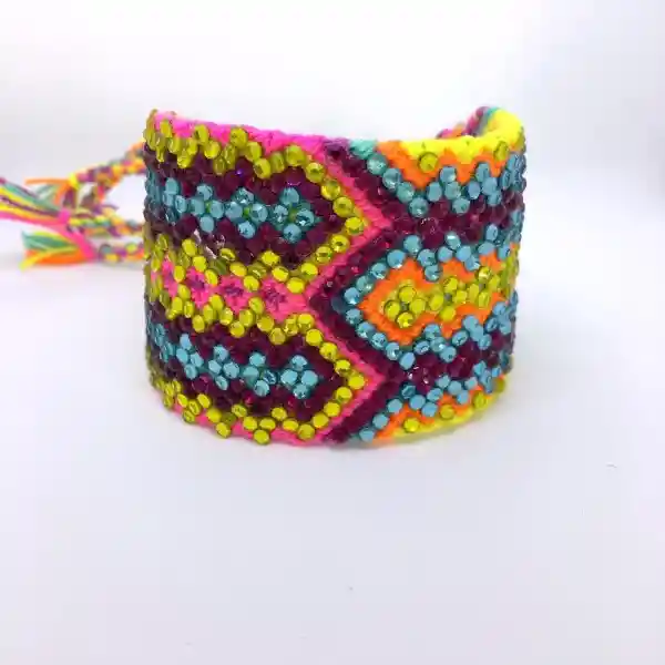 Bg028 brazalete wayuu grande de 4-5 cm de ancho decorado con cristales