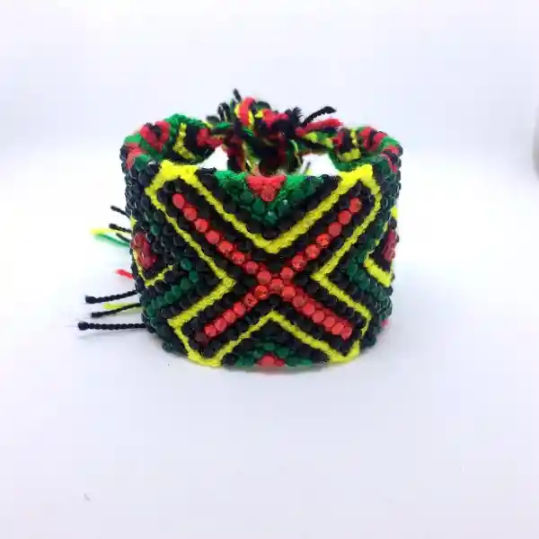 Bg043 brazalete wayuu grande de 4-5 cm de ancho decorado con cristales