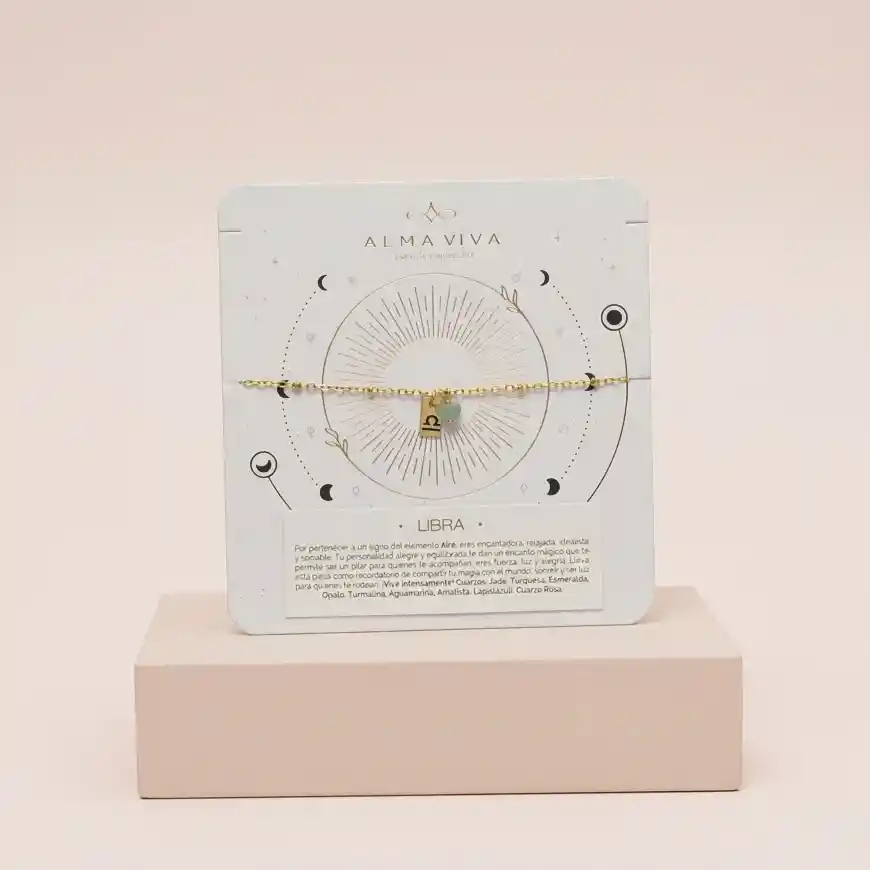 Brazalete Con dije Zodiacal y Cuarzo Jade , Elaborado en Bronce con baño de oro de 18K