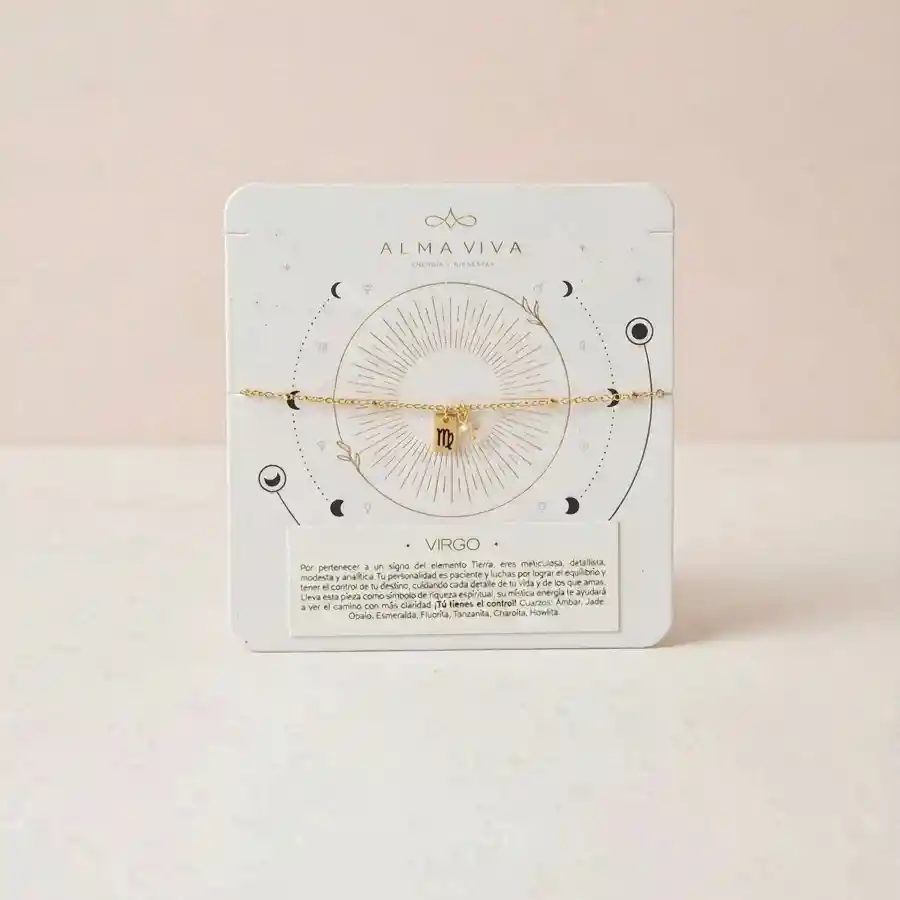 Brazalete Con dije Zodiacal y Cuarzo Ambar , Elaborado en Bronce con baño de oro de 18K