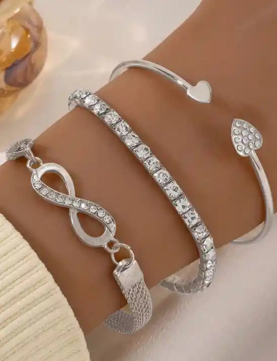 3 Piezas con diamente de imitación con corazón y con diseño de infinito brazaletes Color: Plateado Género: Mujer, Pareja Material: Aleación de zinc