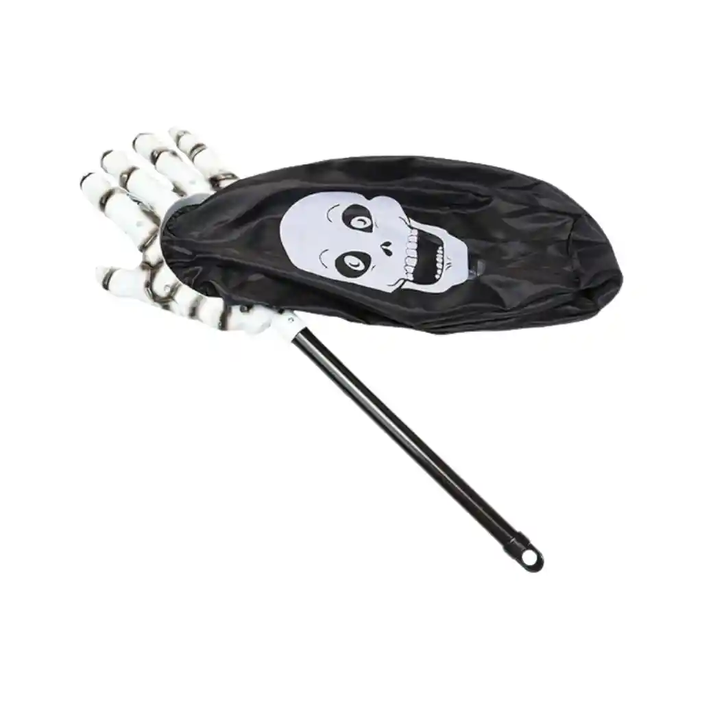 Un toque divertido para Halloween. Este accesorio incluye un brazo decorativo que sostiene una tula para dulces, disponible en dos diseños: Negra con la imagen de la Muerte Naranja con imagen de Calabaza Ideal para entregar caramelos con estilo o como parte de la decoración temática.