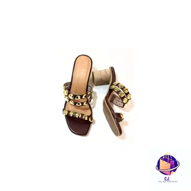 Una combinación perfecta de robustez y elegancia. Esta sandalia de tacón grueso en tono café cacao destaca por sus dos bandas frontales adornadas con estoperoles dorados de gran relieve. Ideal para un look casual-chic que no sacrifica la comodidad. Tacón madera 5 1/2 Tallaje disponible: 35-36-37-38-39