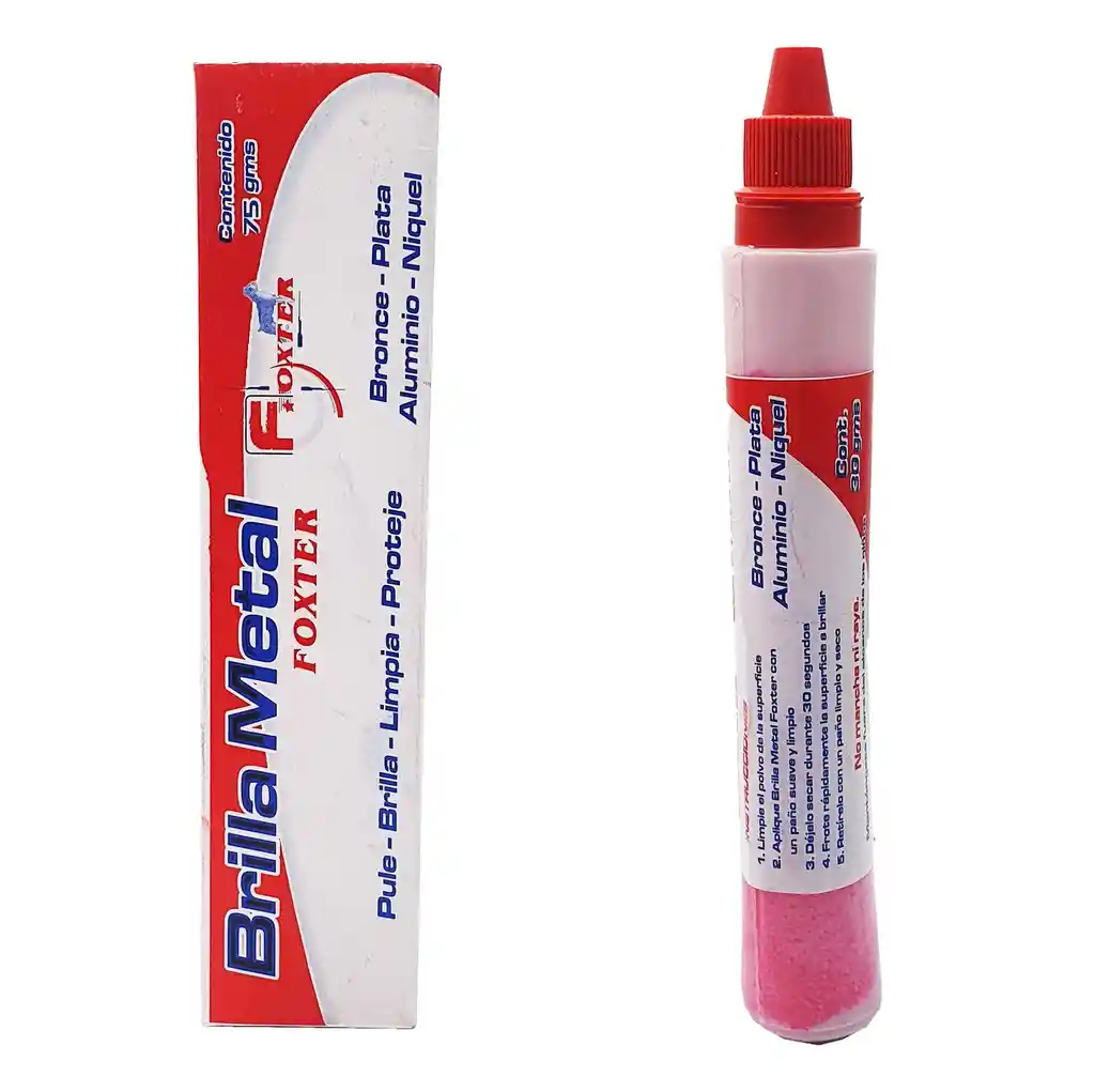 El producto "Brilla Metal" es un limpiador y protector de metales que proporciona una limpieza profunda, brillo duradero y protección contra la oxidación y la corrosión. Es ideal para materiales como bronce, plata, aluminio, níquel y toda clase de metales. Este producto se presenta en forma de crema, lo que facilita su aplicación y permite un mayor control sobre la cantidad de producto a utilizar. Además, su fórmula especial no contiene abrasivos ni componentes agresivos, lo que lo hace seguro para el uso en materiales delicados y de alto valor. La aplicación del producto es muy sencilla. Primero, se debe limpiar la superficie del metal a tratar con un paño suave y limpio. Luego, se aplica una pequeña cantidad de producto sobre el paño o una esponja suave, y se frota suavemente la superficie del metal en movimientos circulares hasta que quede limpio y brillante. Ficha Tècnica: Contenido: 30 gr Limpia: Toda clase de metales Para defectos de fábrica o retractos: Por favor revise el producto apenas lo reciba y antes de usarlo. No aplican ley de retracto o defectos de fábrica luego de usar el producto. Se manejan máximo 5 días para reportar defectos de fábrica (por ejemplo, producto funciona mal, piezas faltantes, rotas, etc). Para hacer efectiva la devolución el producto debe devolverse con el empaque original, el cual debe estar en buen estado, incluir todos los documentos y las partes completas y sin daños.