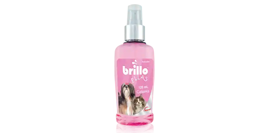 BRILLO COLONIA ELLAS INDICACIONES BRILLO® COLONIA ELLAS está indicada como un agente cosmético para aplicación sobre la piel y el pelo de perros y gatos adultos, proporcionando y manteniendo un olor agradable y fresco a lo largo del día. DOSIS Y VÍA DE ADMINISTRACIÓN Aplicación en spray sobre el pelo y la piel, a una distancia de 20 cm en ángulo de 45° sobre el animal, totalmente seco, tres veces por semana.