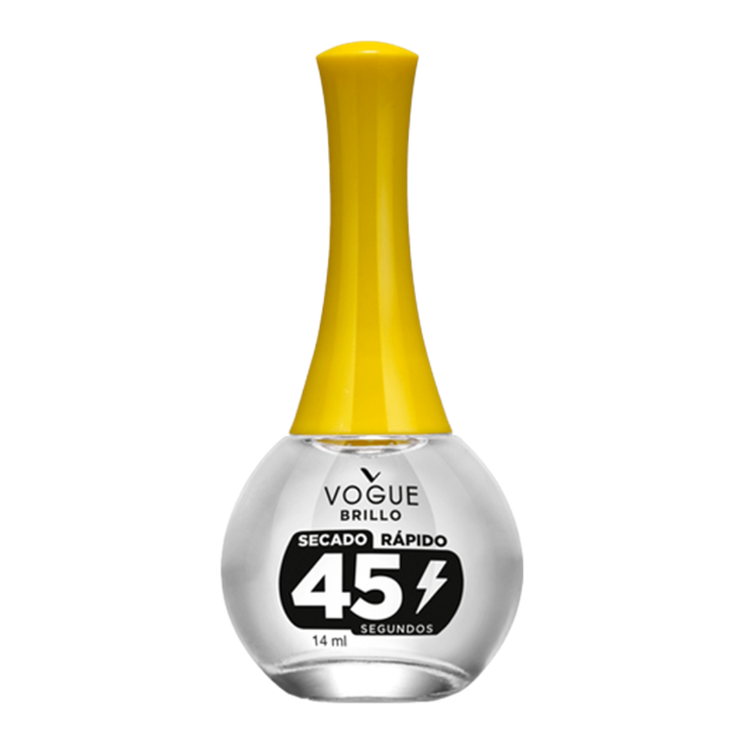 Brillo Secado Rápido, seca tu esmalte en 45 segundos a un precio increible. Detalles de producto Amamos tus ideas pero aún más tu tiempo. Con el Nuevo Brillo de Secado Rápido de Vogue, seca tu esmalte en tan solo 45 segundos, y a su vez te aportará Brillo Extremo. A un precio Increíble Ingredientes ETHYL ACETATE CELLULOSE ACETATE BUTYRATEBUTYL ACETATEISOPROPYL ALCOHOLDIMETHICONEBENZOPHENONE-1MEKCI 60725 Uso Agitar bien antes de usar. Deslice suavemente el pincel con la cantidad adecuada del producto, para ello retire el exceso de uno de los lados del pincel contra la boca del frasco y aplique una capa del producto en la uña con esmalte de color, dejelo secar durante 45 segundos.