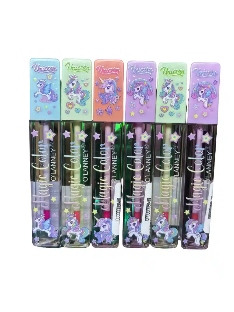 🦄 Brillo Labial Magic Color Unicornio ✨ ¡Dale un toque mágico a tus labios! El Brillo Magic Color Unicornio cambia de color al contacto con tus labios, revelando un tono rosado único que resalta tu belleza natural. Su fórmula suave hidrata y deja un acabado brillante y encantador. 🌈 Características: 🌈 Cambia de color según el pH de tus labios. 🌈 Hidratación duradera y textura ligera. 🌈 Presentación divertida y mágica estilo unicornio. 🌈 Ideal para niñas, adolescentes y amantes del maquillaje tierno. 💖 ¡Un brillo que transforma tu look con magia y color!