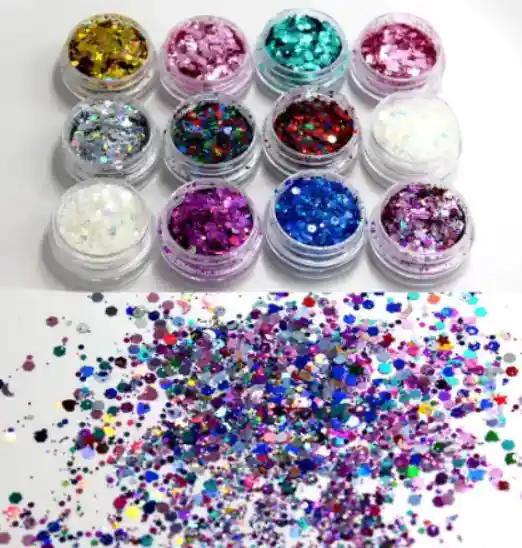 BRILLOS PARA MAQUILLAJE DE ROSTRO, CABELLO O UÑAS LENTEJUELAS PARA CUERPO ESCARCHA PARA MAQUILLAJE