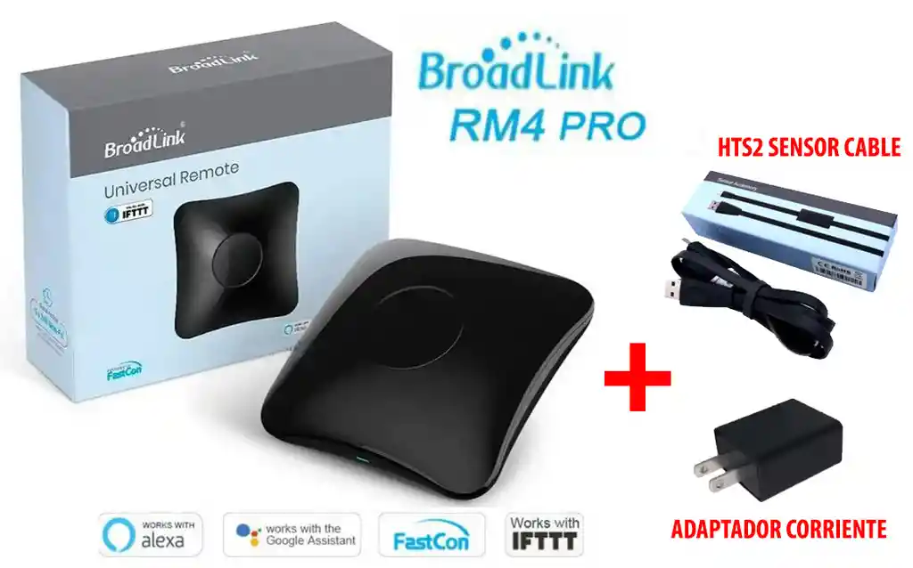 HTS2 MEDIDOR DE HUMEDAD Y TEMPERATURA ----------------------------------------------------------------------------------------------------------------------- INCLUYE EL ADAPTADOR DE CORRIENTE INCLUYE EL CABLE SENSOR HTS2 SENSOR HUMEDAD + TEMPERATURA ----------------------------------------------------------------------------------------------------------------------- La ultima y más reciente versión!. El RM4 Pro te permite controlar dispositivos IR y RF 315/433MHz con tu teléfono inteligente en cualquier momento desde cualquier lugar. Controla dispositivos multimedia como equipos de sonido, televisores y equipos de confort como luces (Broadlink TC2), lámparas, cortinas (por medio de RF), aires acondicionados, etc.… - Certificado WWA (Funciona con Alexa) y WWGA (Funciona con el Asistente de Google) - Compatible con más de 80,000 electrodomésticos a través de la aplicación BroadLink. - Controla dispositivos RF de 315 y 433MHz como cortina-motor de cortinas, interruptor de luz, enchufes, etc. … - Controla tu hogar u oficina de manera remota vía datos celulares y/o Wi-Fi. - Código IR local para una respuesta más rápida - Admite sensor externo de temperatura y humedad (HTS2) - Cuenta con 7 emisores infrarrojos, por lo tanto, tendrá una cobertura de 360 grados. - Protocolo de comunicación FastCon que permite respuestas más efectivas. - Aplicación gratuita disponible para dispositivos móviles iOS y Android. - Control de aparatos mediante infrarrojo en un radio de 8 a 10 metros con línea de vista y/o radio frecuencia en un radio de 50 metros con linea de vista. ** ESPECIFICACIONES Voltaje de entrada: 5V DC Corriente de entrada: >= 1A Temperatura de operación: 0-50 ºC Humedad de operación: <= 85% RH Indicador de operaciones: 1 LED Modo de comunicación: Frecuencia Wi-Fi 2.4 GHz 802.11 b/g/n Consumo en standby: <= 1W Frecuencia infrarrojo: 38K Frecuencia de RF: 433,92 y 315 MHz Control: Infrarrojo y RF multidireccional Rango de control infrarrojo: 8-10m Rango de control Radio Frecuencia: 20m Dimensiones: 84mmx84mmx31mm APP: IOS 7.0 / Android 4.0 ó superior Certificación: CE, ROSH, FCC ID Peso: 95g QUE INCLUYE LA CAJA 1x BROADLINK Rm4 PRO 1x Cable Micro USB a USB 1x Cable sensor HTS2 (Permite medir la humedad y la temperatura) 1x Adaptador de corriente 1x Montura para pared 1x Manual en ingles