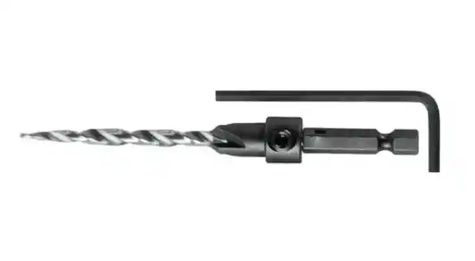 • Incluye avellanador # 10 más una llave hexagonal • Perfora el orificio piloto, lo avellana y los taladros en una sola operación. • La broca se puede ajustar a la profundidad de perforación deseada • El vástago hexagonal de 1/4 "encaja en los impulsores de impacto y en taladros.