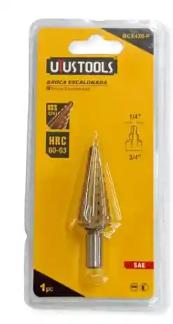 • Acero de alta Velocidad • Recubrimiento en Titanio • Espigo de 3 planos para mayor sujeción • Ideal para hacer diferentes tamaños de perforaciones con una sola broca • Para perforar materiales como: Acero, Aluminio, PVC etc. ° Espigo de 1/4" con 9 pasos de 1/4" a 3/4" • Marca UYUSTOOLS