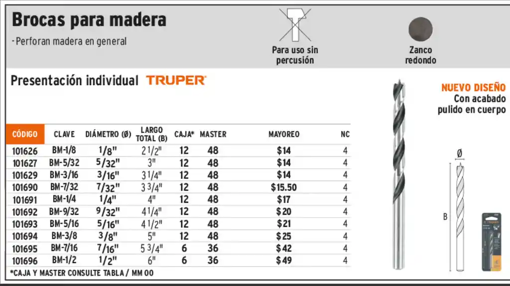 BROCA PARA MADERA CON PUNTA CENTRADORA PARA PERFORACION PRECISA 3/8"