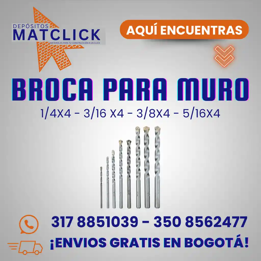 Broca para muro 3/16 x 4, durable y precisa, diseñada para perforar concreto y superficies duras con facilidad